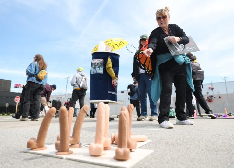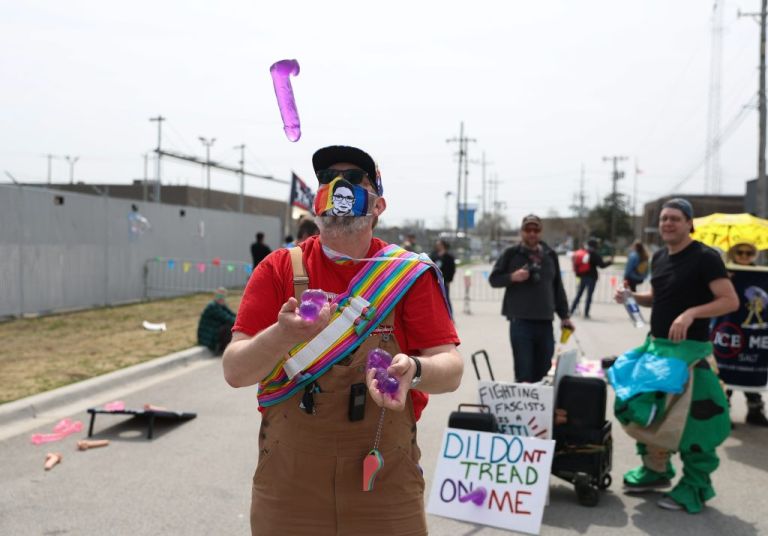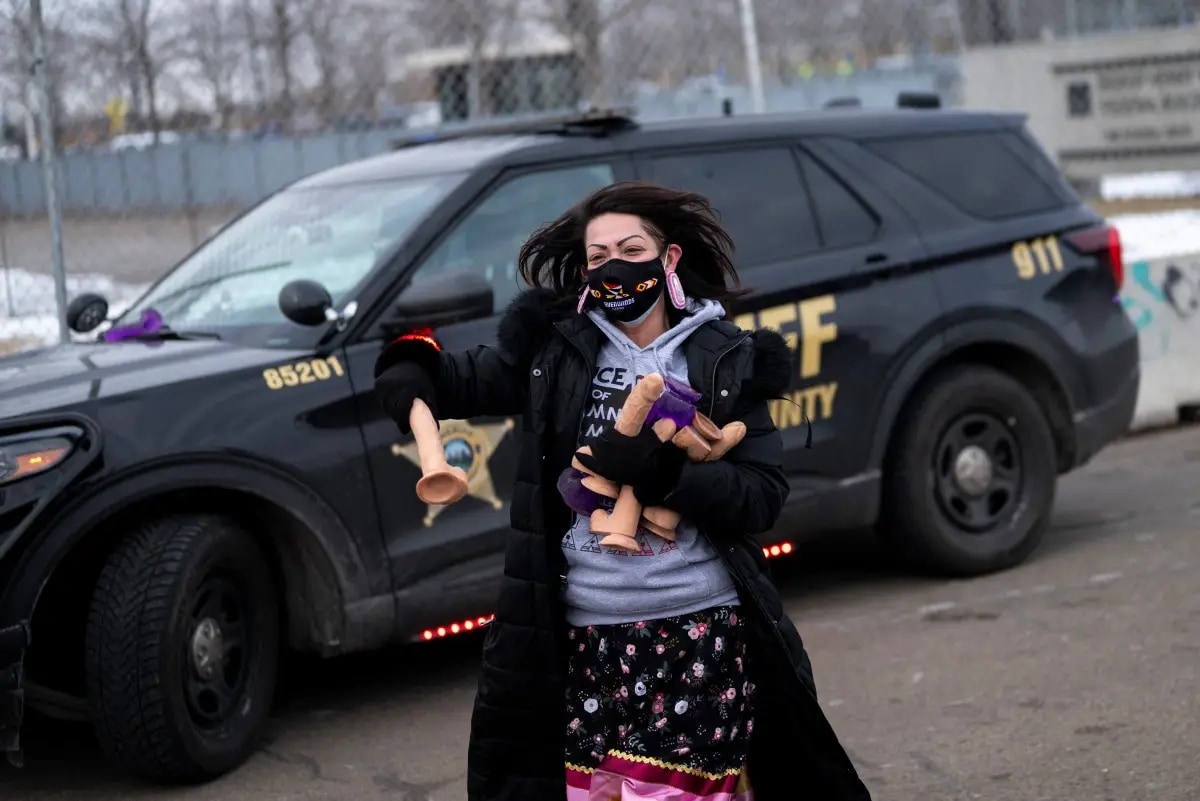 There are no unlawful assemblies. Fuck you. Protesters Wield Sex Toys Outside ICE Facility In Broadview: