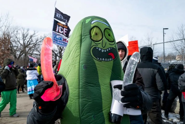 Operation Dildo Blitz Posted by jwz https://www.jwz.org/blog/2026/04/operation-dildo-blitz/ https://jwz.org/b/yk6G Anti-ICE Protest in Minneapolis Ends With 50+ Arrests: Demonstrators shouted "Eat a dick!" and "Fuck ICE!" as they pelted the vehicles with dildos. Activist Russell Ellis, who posted video of the demonstration on Instagram, said the protesters "showed real balls." "Dildos coming your way! Dildos! Dildos!" Ellis barked as the toys rained down on vehicles, landing with rubbery thwunks. "It's raining dicks!" [...] Later in the afternoon, police declared the protest an unlawful assembly before rushing in to arrest 54 demonstrators. "Declared an unlawful assembly" is one of those phrases like "officer-involved shooting" that our lickspittle copagandist media like to trot out un-challenged and un-examined.